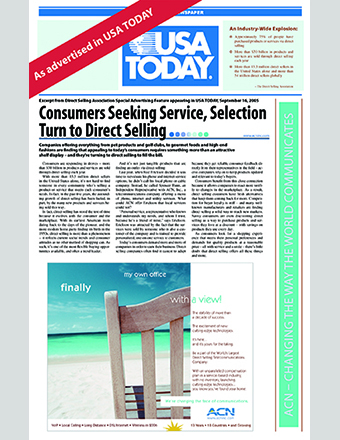 Aujourd’hui, ACN est l’entreprise de vente directe numéro un dans le domaine des services de télécommunications, de l’énergie et d’autres services essentiels pour les particuliers et les entreprises.
